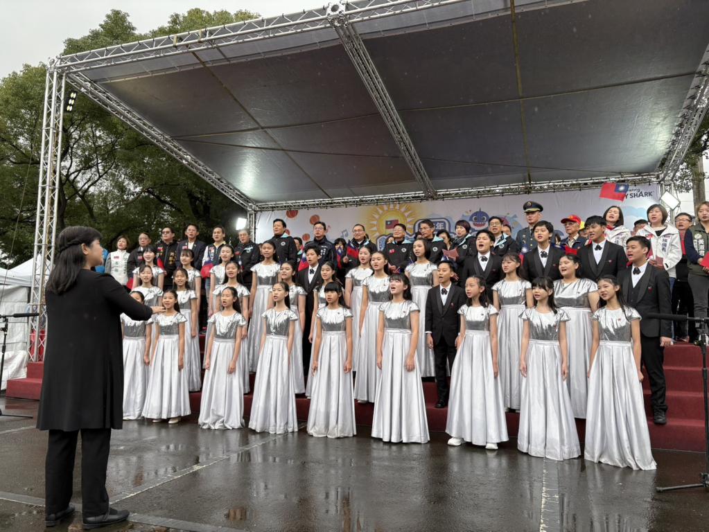 升旗典禮由退儀邦與年僅10歲的小禮兵孫孫引領國旗進場,俐落操槍與整齊步伐展現高度默契;隨後由新北市少年合唱團領唱國歌,並演唱多首正能量歌曲,在嘹亮歌聲中為新的一年注入前進的力量。