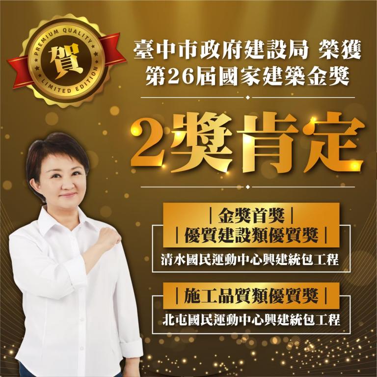 (記者張亞痕/台中報導)臺中市各項公共工程在盧秀燕市長重視與帶領下,市府建設局持續精進工程管理與施工品質,自108年起累計榮獲工程金質獎16件、特別貢獻獎3座、國家卓越建設獎29件及臺中市公共工程品質獎24座,各項建設成果屢傳捷報。