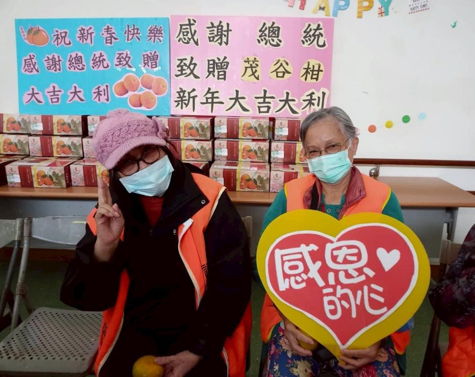屏東榮家李秦強主任表示,感謝總統府長期以來對榮民及眷屬關心與支持,總統致贈茂谷柑,不僅寓意吉祥、圓滿,也代表對榮民長輩身體健康、生活平安美好祝福,這樣祝福讓長輩們感到暖心,更加期待充滿幸福一年。