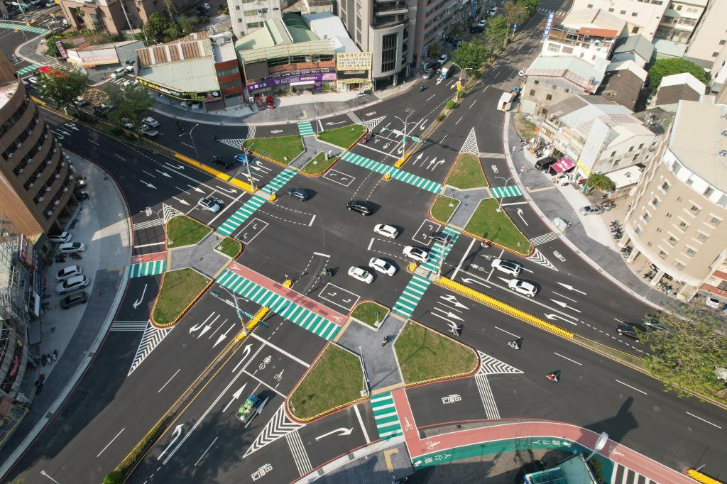 圖說:忠明南路改善完成後,全面提升人行安全與行車順暢度。(中市建設局提供)