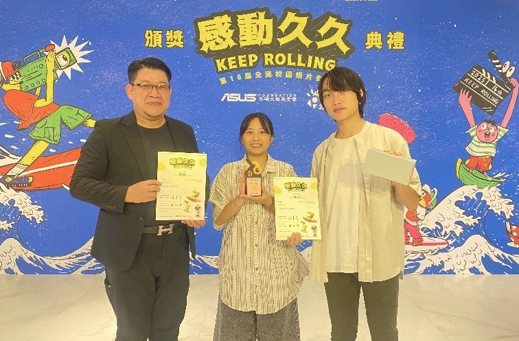 圖說:龍華科大文創系學生王祥寧、葉苡恩榮獲第16屆「感動久久」全國校園短片徵選銅獎。