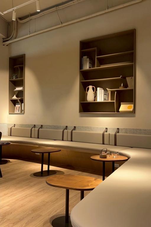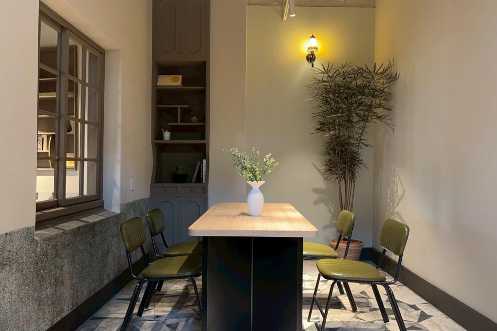 店裝設計以「保留與梳理」為核心,保留了老屋原有的米黃大理石、磨石子地坪與綠色馬賽克磚 。一樓運用低矮石材櫃台引導動線,二樓客席區則保留舊式灶台與壁龕,搭配復古燈具與壓花玻璃,完美重現老台南的生活景深 ;臨街座位區更特別設置竹簾調節南台灣的熱情陽光,光影灑落的瞬間,勢必成為社群平台上的熱門打卡點。