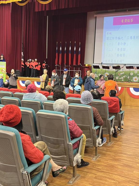 本次以趣味互動交流及有獎徵答方式辦理,內容包含公務員廉政倫理規範、公益揭弊者保護法、消費者保護及反詐騙等,並針對近期詐騙案進行解說,例如:接到不明電話宣稱「親友急需借錢」或「政府退稅」時,務必秉持「一聽、二掛、三查證」,隨時利用165反詐騙專線諮詢,守護辛苦一輩子的養老金。而每位長輩在聽講過程中都相當認真,並熱情參與問答,氣氛熱鬧非凡。