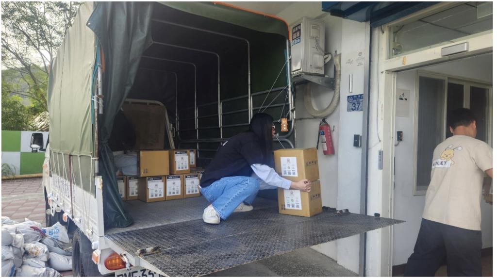 圖說:蔡易潔完成第一波醫療防護支援行動,捐贈1500瓶醫療級人體黏膜專用抗菌防護產品,協助降低災區在清理作業、環境潮濕與傷口暴露情況所可能引發的感染風險。