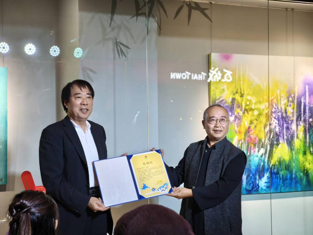 陳正隆在致詞時也提到,中友時尚藝廊團隊相當專業、設計非常用心!這次的作品都是透過植物根、莖、葉、花朵,使用植物的形狀,藉由水分、速度、力度與時間慢慢演化,以水潤墨、以墨增彩,彩墨相容而成光影的成色穿透,歡迎喜愛藝術的朋友到中友時尚藝廊觀賞。
