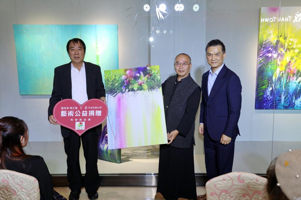 同時,陳正隆這次也提供作品《花開時節 敬天謝地》於展覽中進行義賣、價值新台幣200,000元整,義賣金額將全數捐贈給「財團法人希望基金會」,希望透過藝術傳播的力量讓愛遠播。