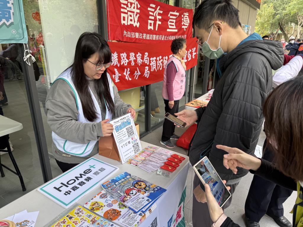 除了書法揮毫,活動現場更設有多元宣導攤位,新北市警察局樹林分局的反詐騙宣導、台鐵局的安全防範小遊戲等結合藝文展演與實用資訊,讓活動不侷限於春節氛圍,更猶如小型園遊會,現場宣導攤位更是有許多親子人潮參與,每個人有玩又有小禮物可以拿,為活動增添豐富趣味。