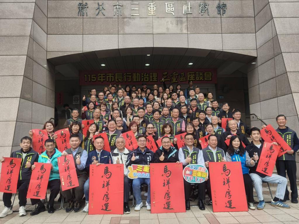 侯友宜表示,市府正全力推動軌道建設,目標2030年達成每十萬市民享有三座車站的願景。他特別點名三重熊猴森公園已成為國際級親子景點,這些成果皆賴里長在第一線的貢獻,市府團隊的努力,讓三重的建設、計畫、福利能「加倍、加速、加碼」。侯市長現場要求各局處主動出擊,作為區公所最堅強的後盾。