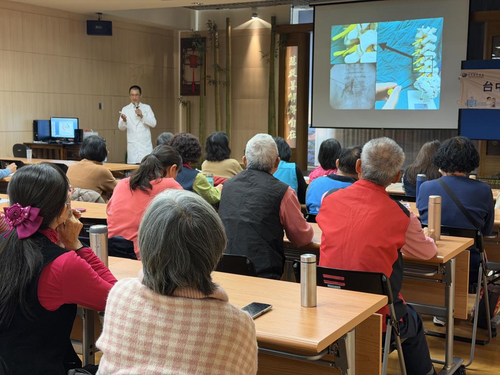 台中慈濟醫院疼痛治療科主任唐宗詠特地到場分享醫療新知,以「認識介入性疼痛治療」為題,介紹常見疼痛問題,包括肩頸痠痛、下背痛、坐骨神經痛、三叉神經痛及皰疹神經痛等。唐宗詠特別提醒,皰疹神經痛切勿輕忽,應及早治療,如同電線走火需即時處理,避免後續併發症。