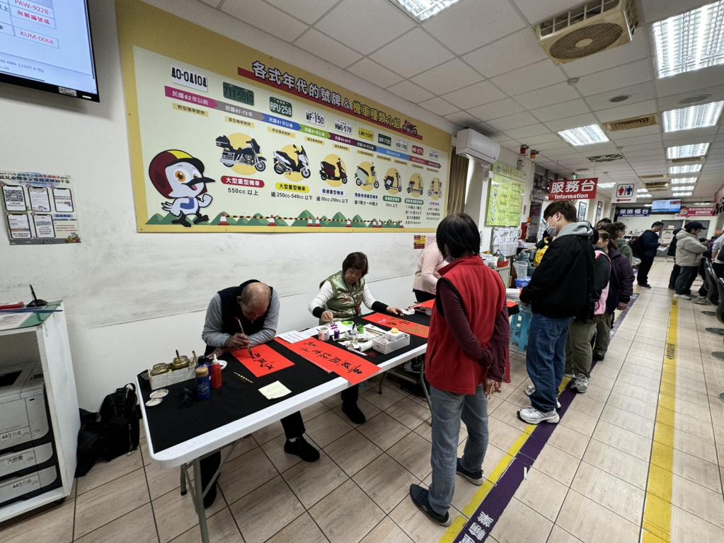 (勁報記者胡光輝/新北報導)農曆新年將至,蘆洲監理站於115年2月5日上午10時在A棟辦公廳舉辦「揮毫春聯迎馬年,馬到成功喜氣到」贈春聯活動,該站特別邀請3位書畫老師蒞臨現場揮毫,提供客製化服務,幫民眾書寫想要的吉祥文字。