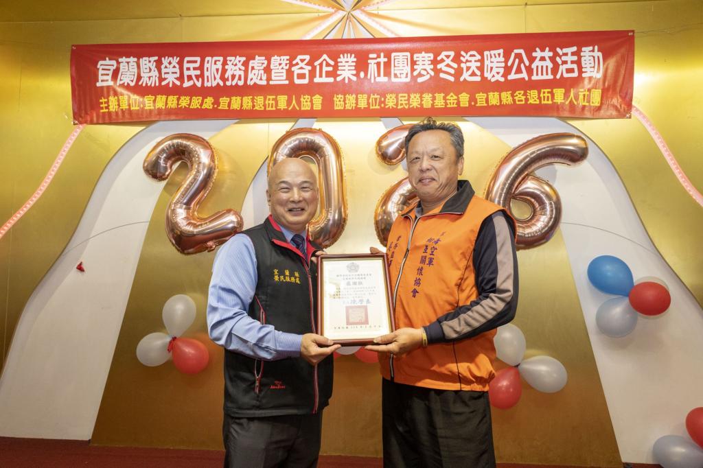 宜蘭縣榮民服務處處長陳學良在「圍爐餐會」致詞表示,宜蘭縣榮服處只有23位正式編制員工及11位外勤組長,但要服務近1萬6仟多位榮民眷服務照顧工作,如就醫、就養、就業、就學、遺孤照顧等,在過去一年來,感謝財團法人榮民榮眷基金會等社會各界對於榮眷關愛,熱情地提供許多物資及善款,來協助弱勢榮民眷、遺眷(含遺孤)們生活上照顧。
