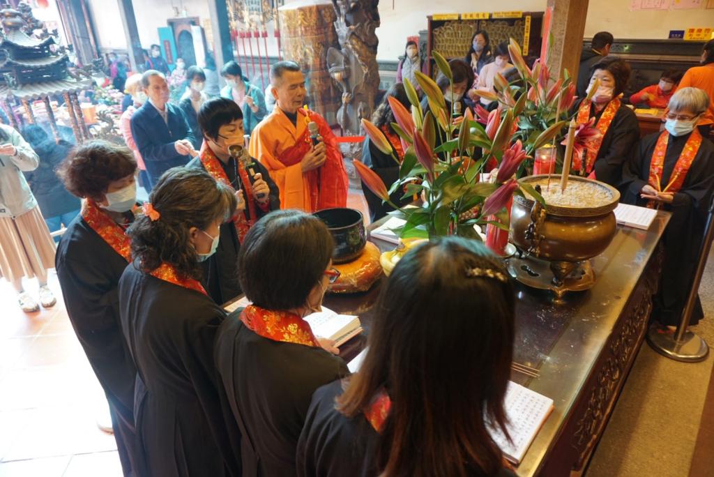 圖說:萬和宮謝斗法會,普銓法師偕同蕭董事長開懺。(中市萬和宮提供)