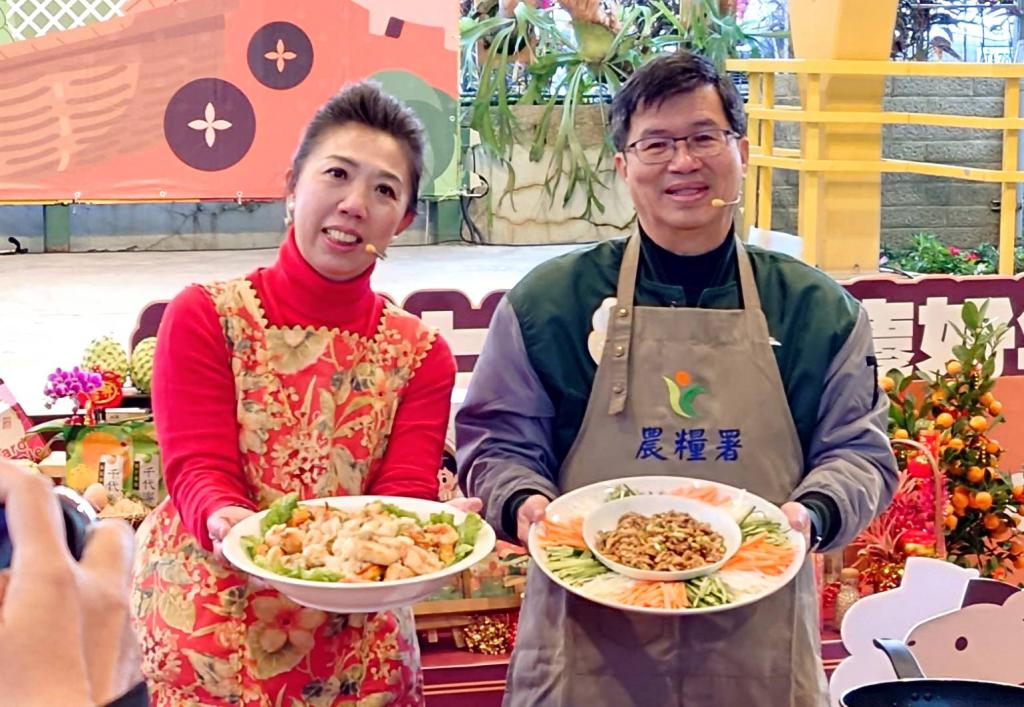 圖說:阿芳老師與黃副署長進行年菜示範秀。
