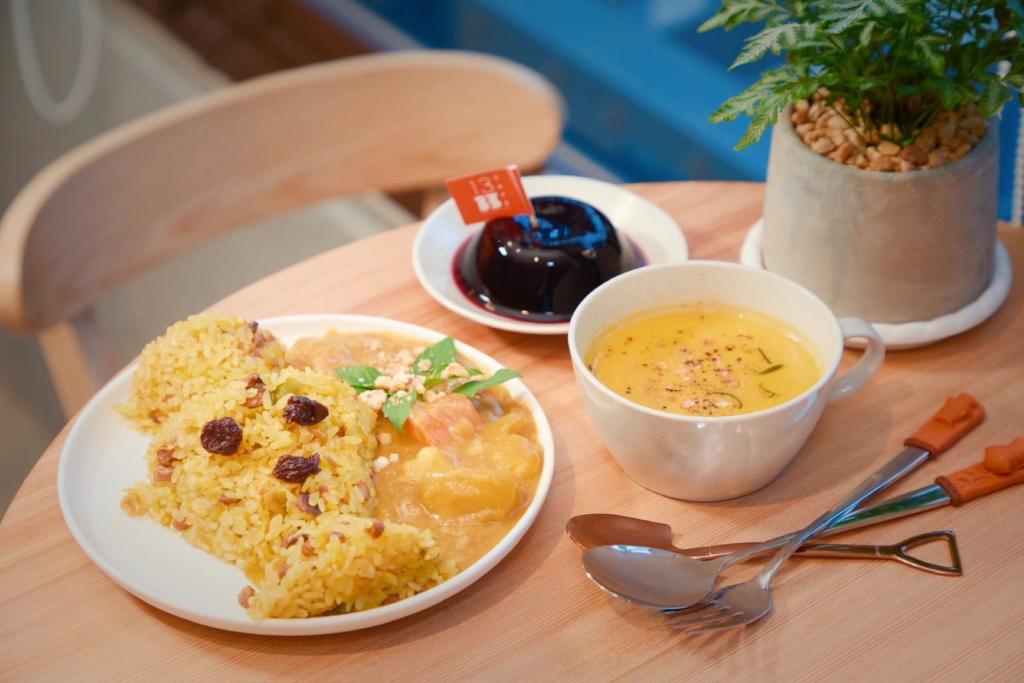 延續這份對環境的溫柔,餐飲體驗更是一場舌尖上的考古探險。「13 CAFÉ」攜手「甜素 Sweet Vegan」與「里仁社會企業」,選用在地有機、友善耕作的食材,打破傳統素食框架,推出一系列寓意吉祥的「考古餐點」。遊客可以品嚐到造型吸睛、象徵面面俱到的「人面陶罐素炒飯」,層次豐富寓意步步高升的「地層米漢堡」,以及圓滿討喜的「環紋玉玦披薩」;飲品部分則與「玄米大吟釀」聯名,結合新北在地石花凍推出清爽解膩的「拾參‧層層泡泡飲」。所有餐點堅持無蛋奶與人工化學添加,讓長輩與過敏族群也能在過年期間安心享用。此外,餐桌上還藏著跨世代的溫暖祝福,館方邀請金包里慈護宮關懷據點、最高齡達92歲的長輩們參與創作,將館藏文物「人面陶罐」轉化為獨一無二的手繪杯墊,在舉杯互道恭喜的時刻,也能感受到這份來自社區長者的真摯心意。