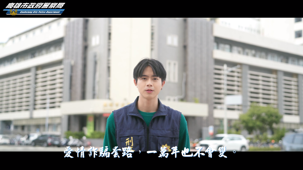 【勁報記者張淑慧/高雄報導】高雄市政府警察局推出別出心裁的防詐宣導短片,巧妙復刻電影《月老》中的經典橋段,將浪漫愛情片神反轉成寫實警世劇。短片中,前職業軍人、現為優格店暖男老闆的網紅宇光受邀擔綱主演,飾演網戀詐騙男角色。畫面中,宇光深情款款地對女主角說出「如果一百歲妳還沒有人要,那妳就嫁給我」的動人告白。然而,就在粉紅泡泡瀰漫之際,飾演月老的女警突然現身,手持利剪無情地「喀擦」一聲,剪斷兩人手中象徵愛情實為詐騙的網路線。這一神來之筆的劇情轉折,瞬間將唯美的愛情場景拉回殘酷現實。