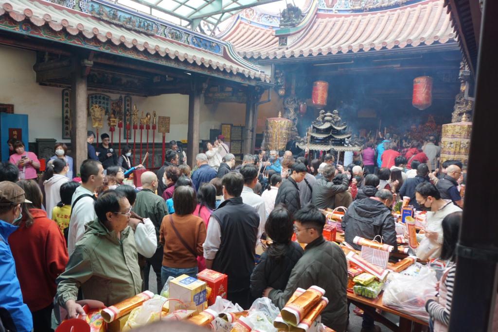 圖說:大年初一中市萬和宮萬頭攢動,廟內外、安燈及踜轎腳人聲鼎沸。(中市萬和宮提供)