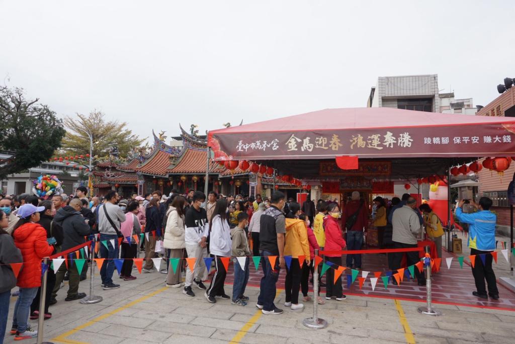 (記者張亞痕/台中報導)今日丙午馬年大年初一,已經342年歷史、香火鼎盛的台中市萬和宮,籠罩著濃厚的年味,川流不息的善男信女,依序進入廟內,虔誠參香祈福。清晨6點多,就有不少鄉親、信眾,到萬和宮行春、參香或在萬和文化大樓一樓等候安燈,人潮川流不息。「恭喜呀、恭喜呀」「財神到!財神到!」「新年到!招財進寶!」「財源滾滾來」「咚咚鏘 咚咚鏘 咚鏘 咚鏘 咚鏘鏘」廟方播放的賀歲歌曲,增添濃濃的年節氣氛。