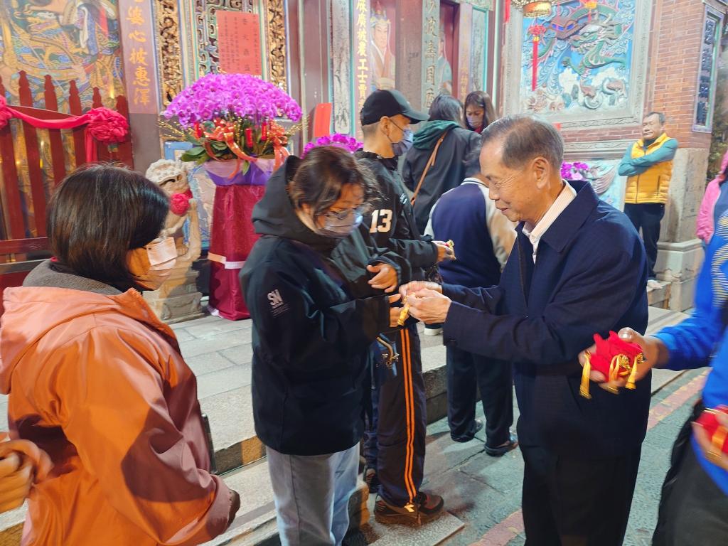 昨日除夕夜子時11點15分,萬和宫廟門打開,蕭清杰率領董監事及守候廟前的信眾,井然有序進入廟,舉行丙午馬年新春團拜,祈求媽祖保佑信眾在新的一年平安、健康又順利,揭開歡樂春節假期序幕。他還贈送信眾錢母,並祝福新年快樂,蛇年行大運。