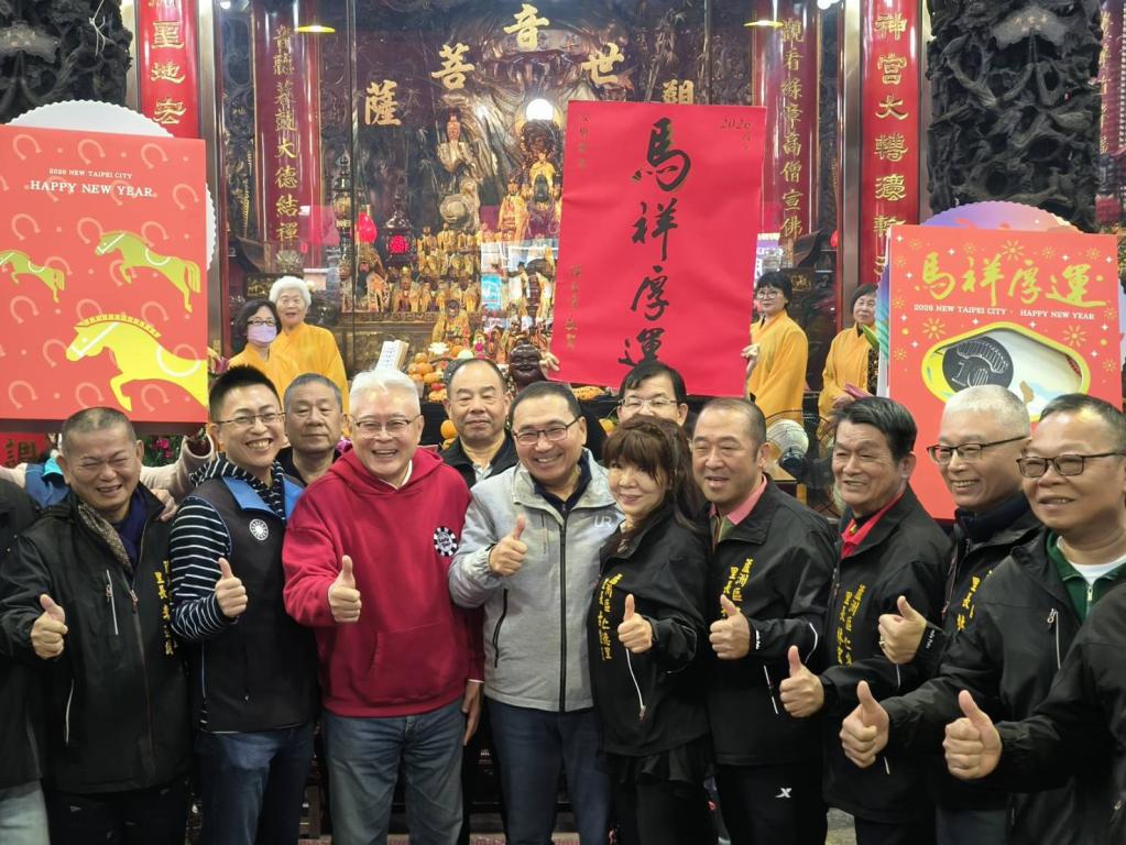 圖說:市長侯友宜大年初二前往湧蓮寺參拜,並與地方仕紳及里長大合影。