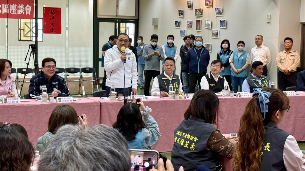 圖說:市長侯友宜率市府局處團隊至鶯歌及三峽區與在地里長行動治理座談,聽取地方意見。