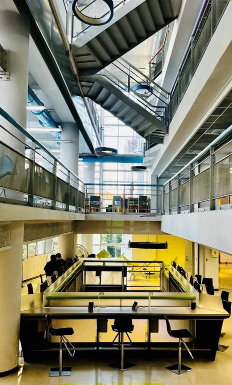 圖說:龍華科技大學圖書館內部空間明亮舒適,營造自主學習與跨域交流的良好環境。