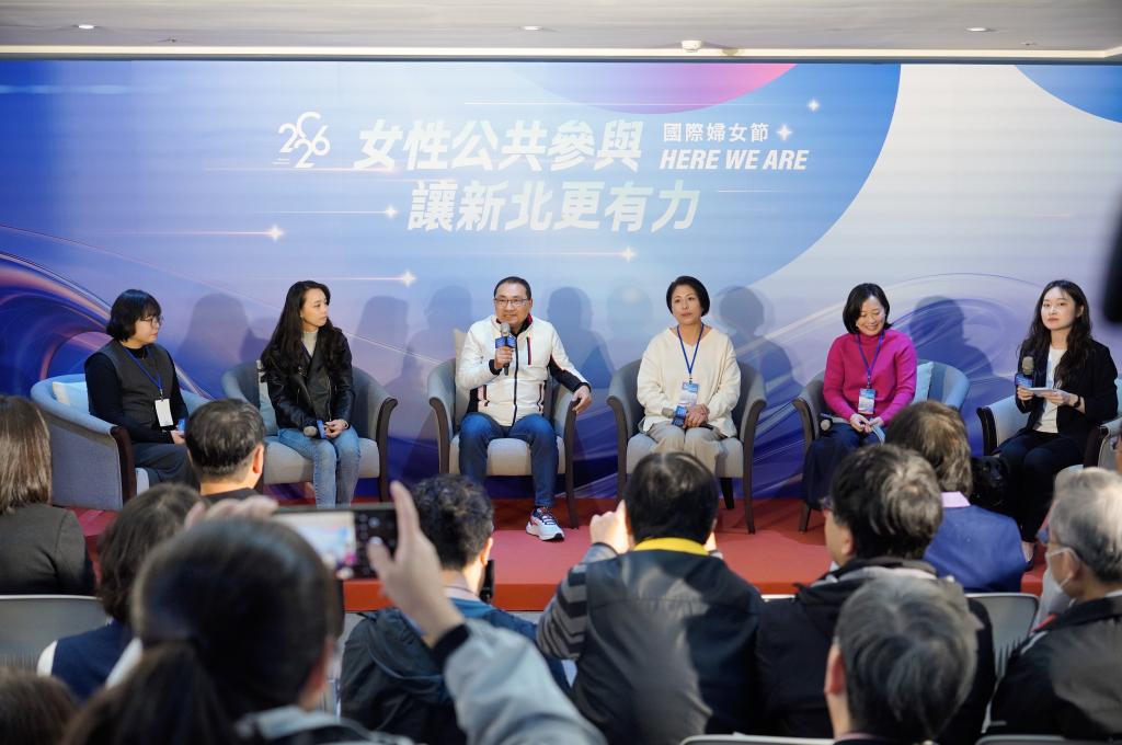 圖說:新北市政府社會局舉辦「女性公共參與,讓新北更有力」記者會,市長侯友宜與4位不同領域的女力代表同台對談。