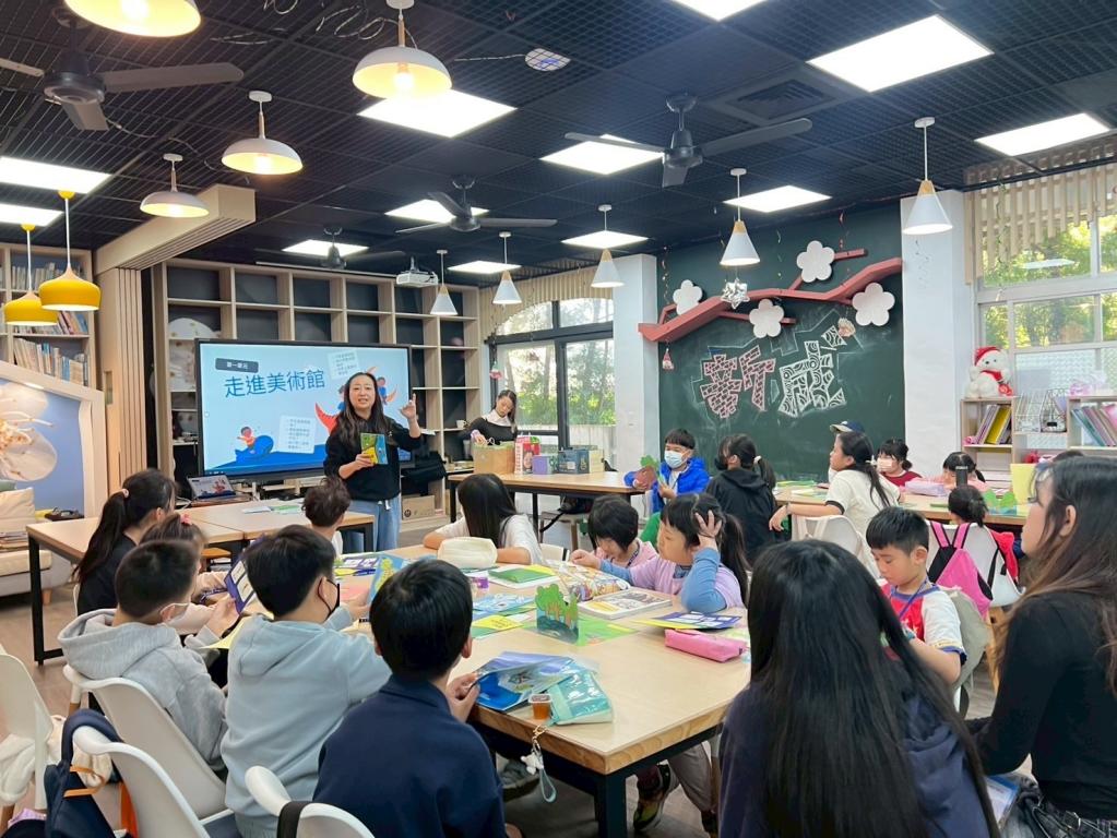 圖說:富邦美術館副館長林羽婕帶領孩子透過ai進行藝術探索。(中市府數位發展局提供)