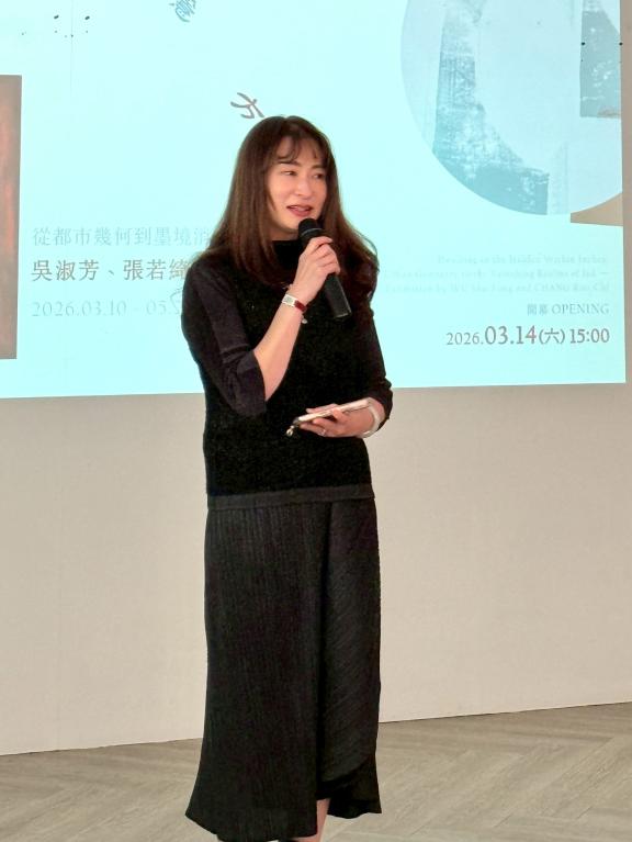 (記者張亞痕/台中報導)大象藝術空間館於2026年春季推出深具空間哲學意涵的雙個展《大隱方寸間:從都市幾何到墨境消隱的棲居之境》,展期自3月10日至5月23日,並於今(3/14)下午三點舉行開幕式。現場佳賓雲集、讚譽如潮,觀者流連於幾何秩序與水墨禪境之間,深刻感受當代女性藝術家在藝術實踐中的深厚底蘊。