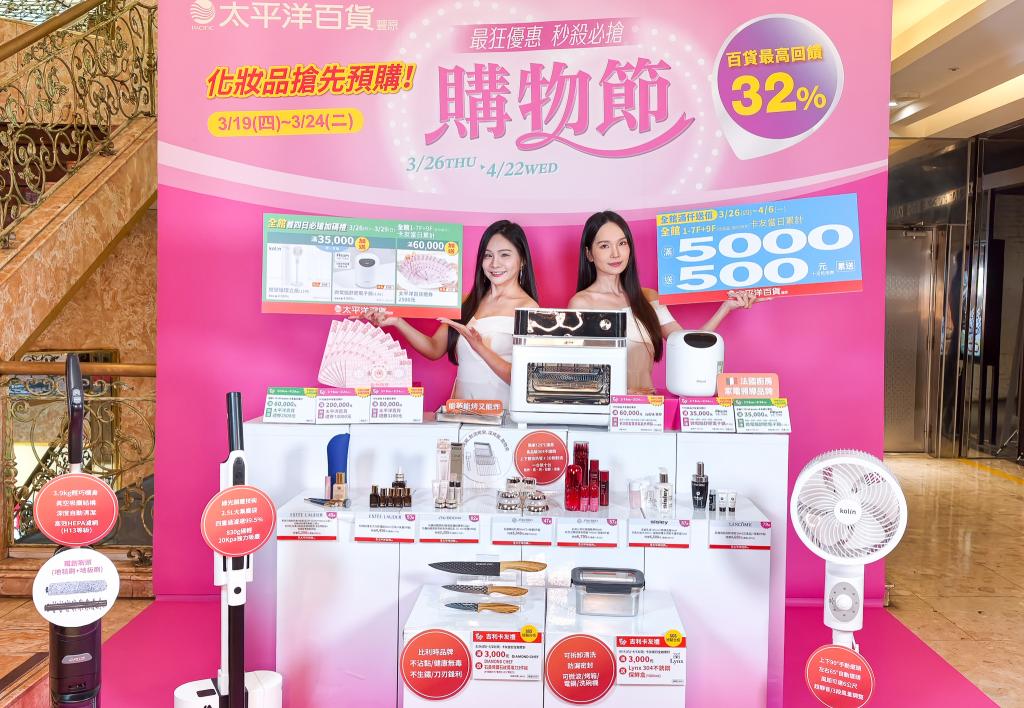(記者張亞痕/台中報導)豐原太平洋百貨「購物節」,即將於3/26至4/22展開!其中,3/19至3/24化妝品搶先預購,推出單筆滿3,000送300,消費滿15,000再加碼贈送500,豪氣不限量!此外,預購期間更祭出六檻預購必搶加碼禮,消費滿額即可獲得限量精選品牌家電,再搭配國泰世華信用卡獨家優惠,百貨最高回饋達32%,打造中區最具吸引力的購物盛會。