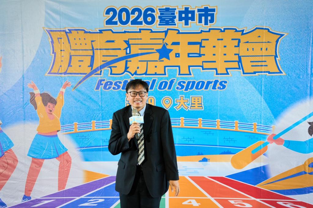 運動局長游志祥代表市長盧秀燕出席記者會表示,台中市體育嘉年華會已邁入第24屆,感謝市議會議長暨市體育總會理事長張清照、市議員暨市體育總會秘書長蘇柏興與市府攜手推動。去年首度移師屯區舉辦即獲熱烈迴響,今年延續人氣,將於3月29日在大里高中登場,現場規劃多元運動體驗、闖關活動、精彩表演及摸彩抽獎,邀請市民一起動起來,感受運動魅力。