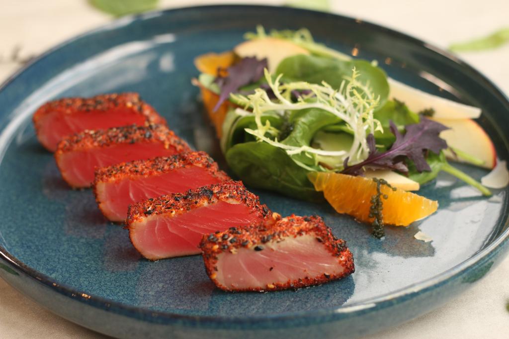 主打森林系風格的沐青餐廳,則於3月28日推出全新春季菜單,融合在地食材與創意料理手法,帶來多款話題新品,包括鮮蝦花枝鹹蛋苦瓜麻花捲麵、唐辛子柑橘鮪魚沙拉,以及提供照燒與椒麻雙風味的紋甲花枝墨魚飯。3月21日至27日同步展開新品試賣,提前為春季饗宴暖身。