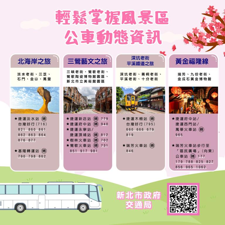 交通局表示,清明連假期間通往各墓區主要路口均設置交通管制點,管制車輛進出,掃墓民眾可多利用大眾運輸工具轉搭接駁車。墓園交通管制、接駁車路線、發車時間、停靠站及墓區周邊停車資訊,可透過掃描清明連假交通資訊懶人包QR CODE連結「2026新北市清明服務網」查詢。