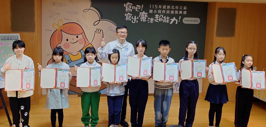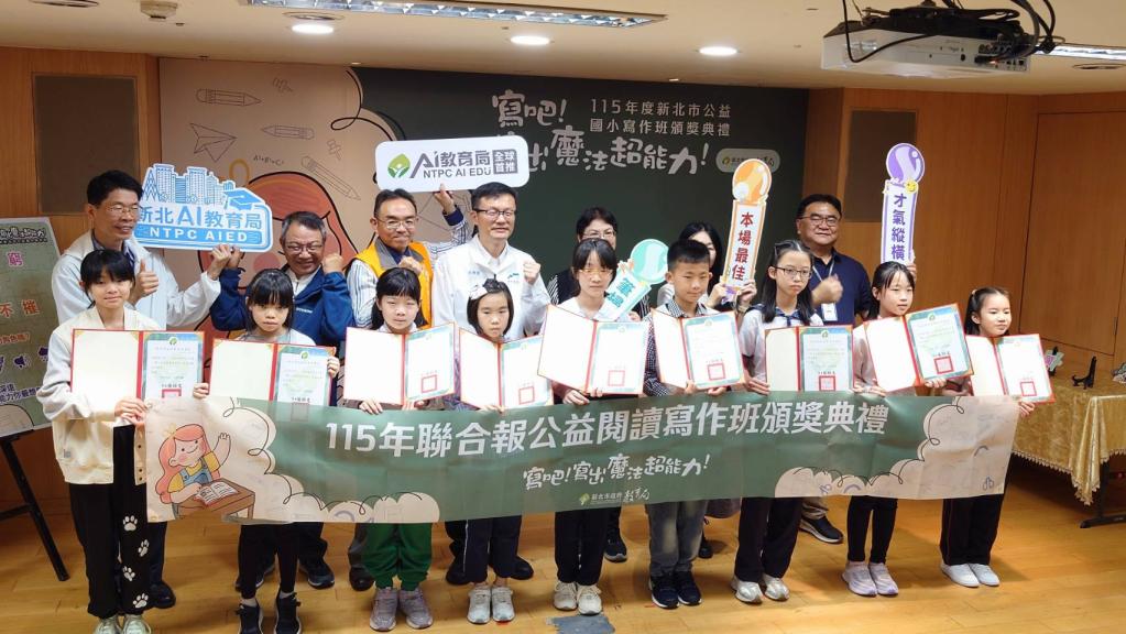 (勁報記者胡光輝/新北報導)新北市教育局今(30)日舉辦「115年度國小公益閱讀寫作班頒獎典禮」,以「寫吧!寫出魔法超能力!」為主題,鼓勵孩子從閱讀中培養思考力,在寫作中展現觀察力、想像力與表達力。今年全市共有30所國小開設公益閱讀寫作班,吸引近千名學生參與,並從眾多作品中評選出特優、優選及佳作,展現學生豐富的創意與細膩的生活感受。