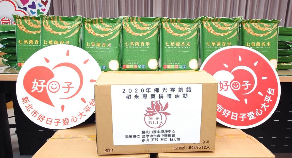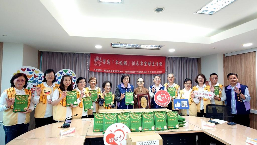 (勁報記者胡光輝/新北報導)佛光山泰山禪淨中心響應新北市好日子愛心大平台,於今(1)日捐贈1,866公斤白米,由新北市社會局長李美珍代表受贈,並回贈侯友宜市長感謝牌,這批滿載善念與祝福的愛心白米,後續將透過各社福中心發送予弱勢家庭,為家戶餐桌增添一份溫飽與安心。