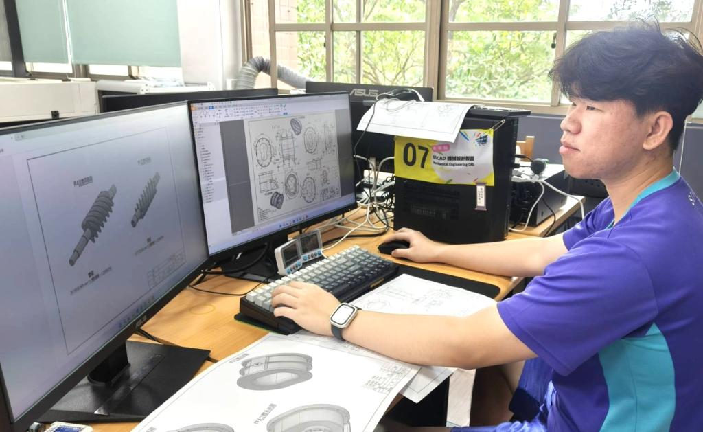 學生在賽場上的表現,展現長期扎實訓練成果。榮獲CAD機械設計製圖第一名的三重商工雷祐嘉同學表示,賽前經常練習到晚間10點,只為了交出一份不留遺憾的作品,感謝老師每天協助精準檢視圖面、運用動畫導引加強觀念,這座金牌是師生並肩作戰的職人成果!