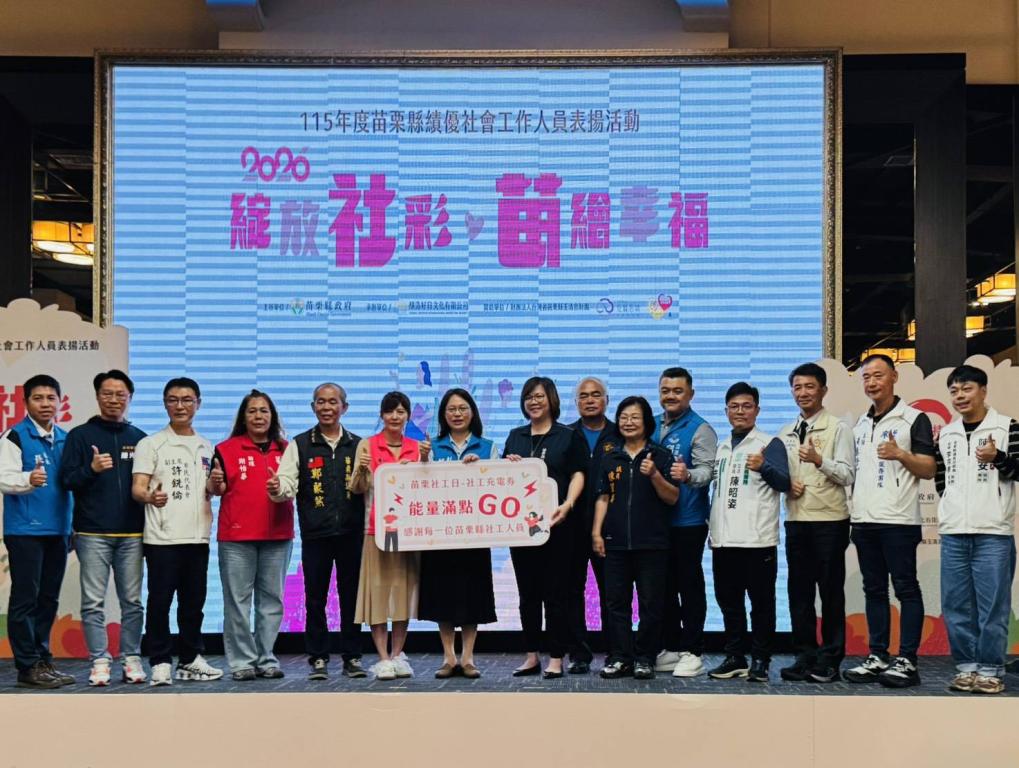 【勁報/苗栗報導】為表彰社會工作人員長期投入社會服務辛勞與貢獻,苗栗縣府近日舉辦「綻放社彩‧苗繪幸福」績優社會工作人員表揚活動,由賴香伶副縣長主持,苗栗縣榮服處陳立中處長受邀共襄盛舉,向第一線社工人員致上最高敬意,現場氣氛溫馨感人;活動中表揚28位表現優異社會工作人員,肯定其長期深耕基層,關懷弱勢族群,展現專業精神與服務熱忱。