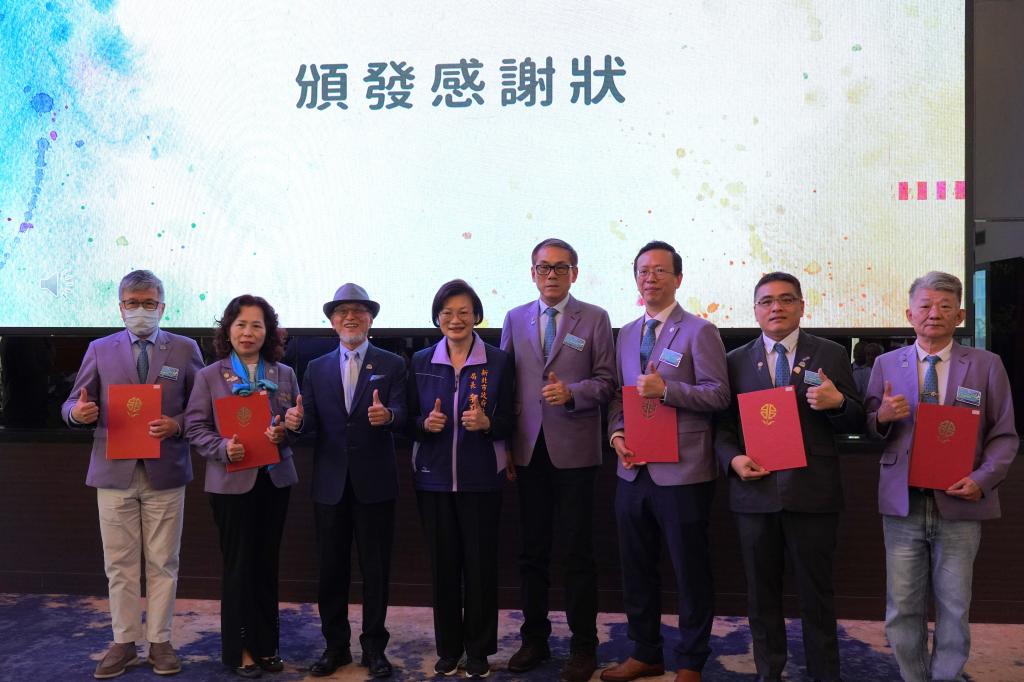 圖說:社會局長李美珍(左4)代表侯友宜市長頒贈感謝狀給綠家扶輪社,左3為國際扶輪3490地區總監張煥章、右4為助理總監盧添富、右3為綠家扶輪社長陳塘偉。