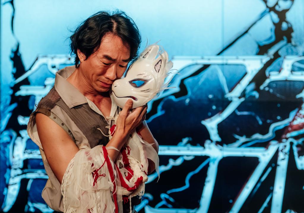 圖說:金枝演社創作者施冬麟集編、導、演一輩子的經驗,在《籠子裡的白狐》一人分飾人與狐二角,並結合說書、操偶與京戲。(臺中國家歌劇院提供)