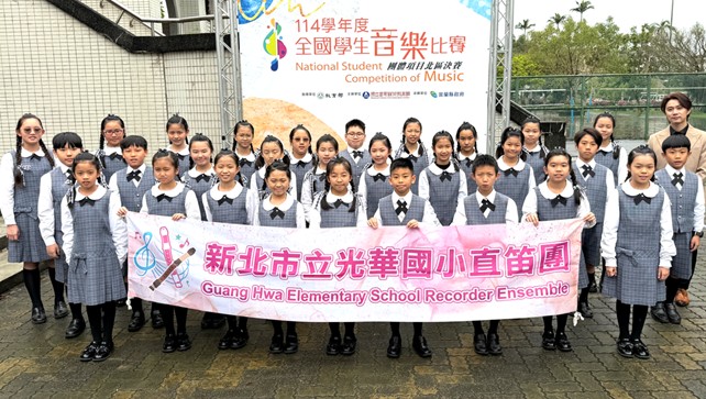 光華國小在音樂領域表現卓越,直笛團與國樂絲竹團雙雙榮獲特優肯定,直笛團更於國際舞台勇奪日本大阪木笛大賽金賞,展現與國際接軌的實力。校長洪中明表示,學生在市賽及全國賽中展現高度韌性與穩定表現,來自於長期紮實的培育;學生蔡沛萱也說,經由比賽累積經驗持續精進,讓自己在正式演出時更能穩定發揮。