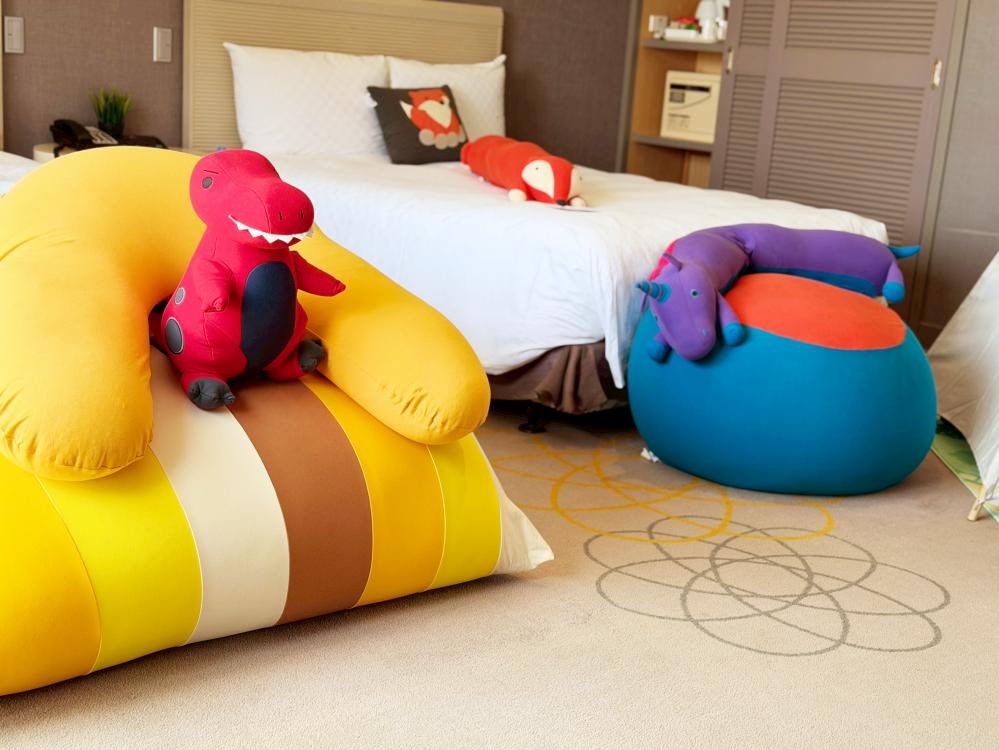 ▲新竹老爺攜手yogibu懶骨頭推出限量親子房,新竹老爺表示,來自美國的Yogibo懶骨頭以貼合身形、多功能性與高舒適度著稱。(圖/新竹老爺提供)