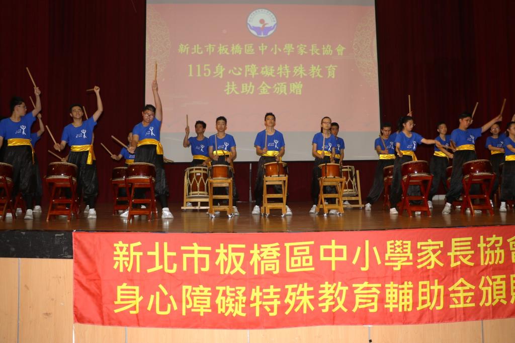 圖說:光仁中學特教班學生在捐贈典禮前以太鼓感謝並迎賓。