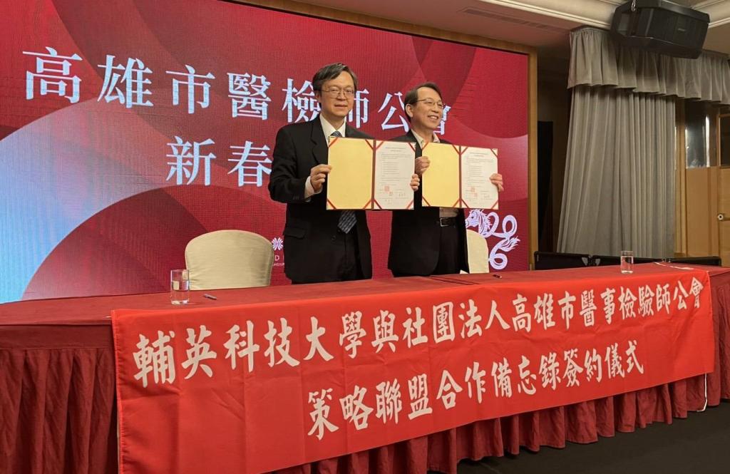 合作備忘錄由輔英科大醫學與健康學院陳中一院長與高雄市醫事檢驗師公會張喬棠理事長共同簽署,雙方將在資源技術交流、產學合作計畫推動、專業人才培育、學生實務技能精進及就業輔導等面向展開合作,盼透過制度化合作機制,培養符合產業需求的優質醫檢人才。