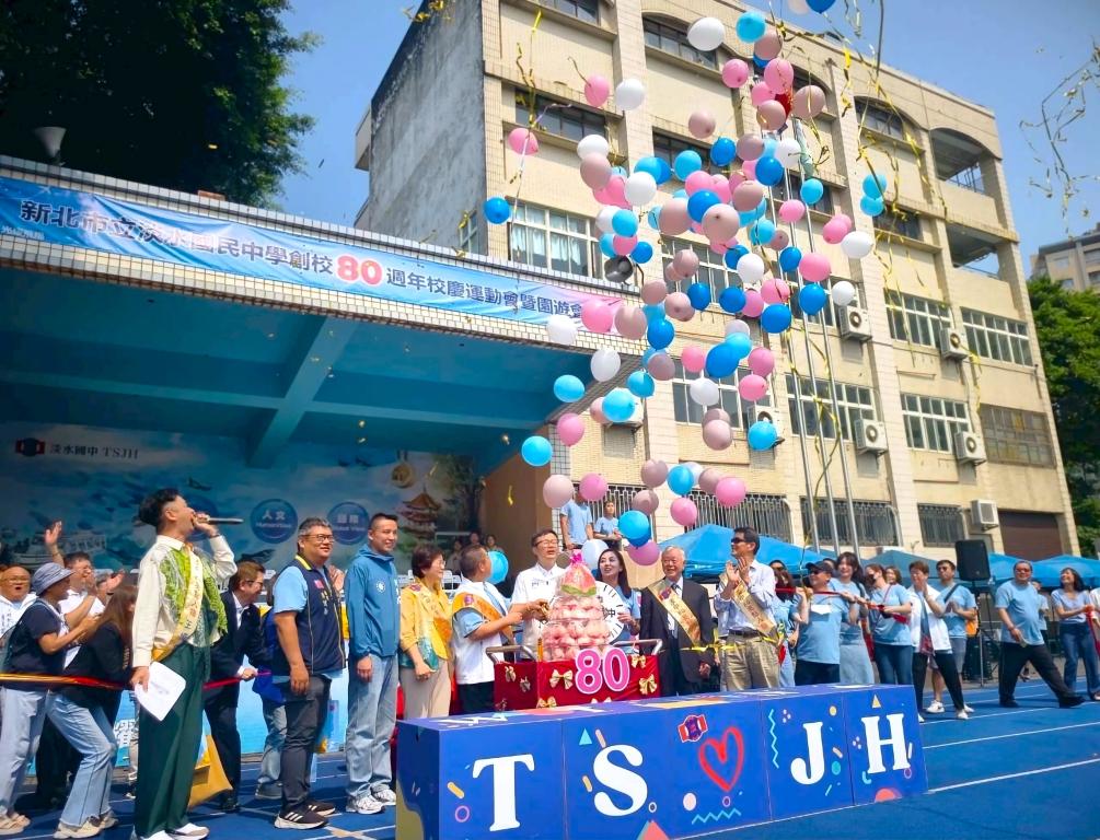 圖說:淡水國中以「淡中新航・光耀飛揚」為主題,舉行創校80周年校慶。