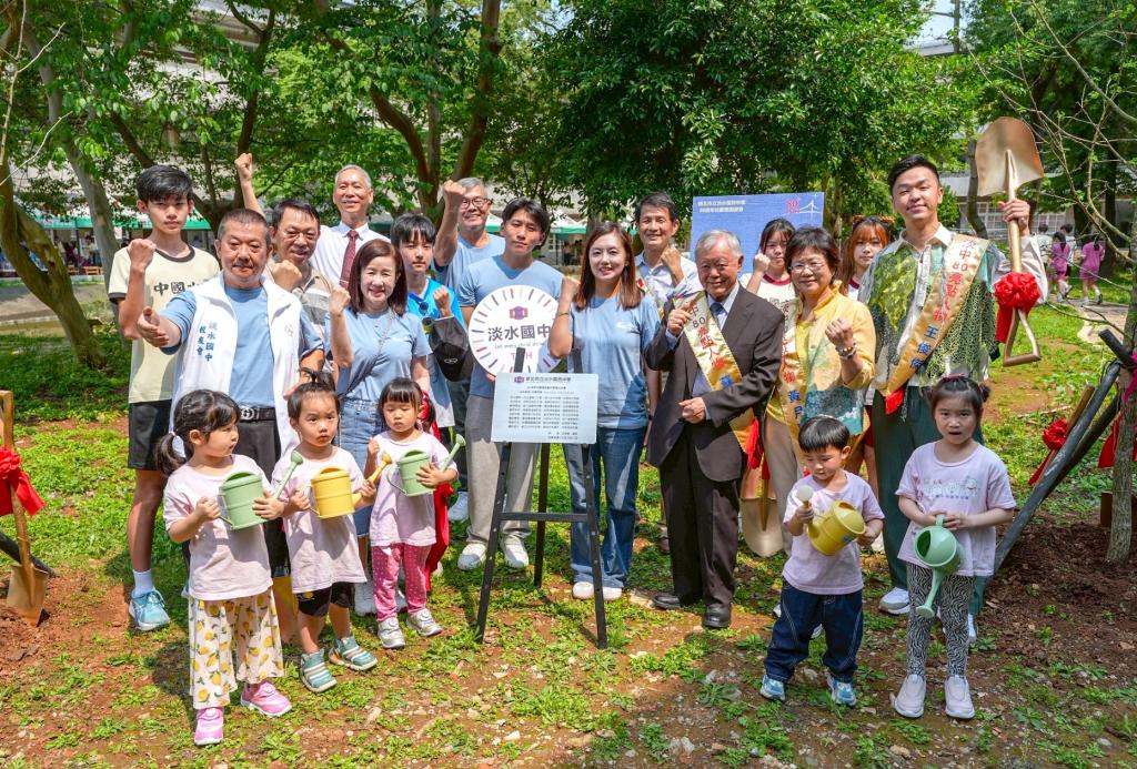 圖說:淡中80時光植夢・迎向幸福植樹儀式則於校園種下銀杏樹,象徵希望與傳承。