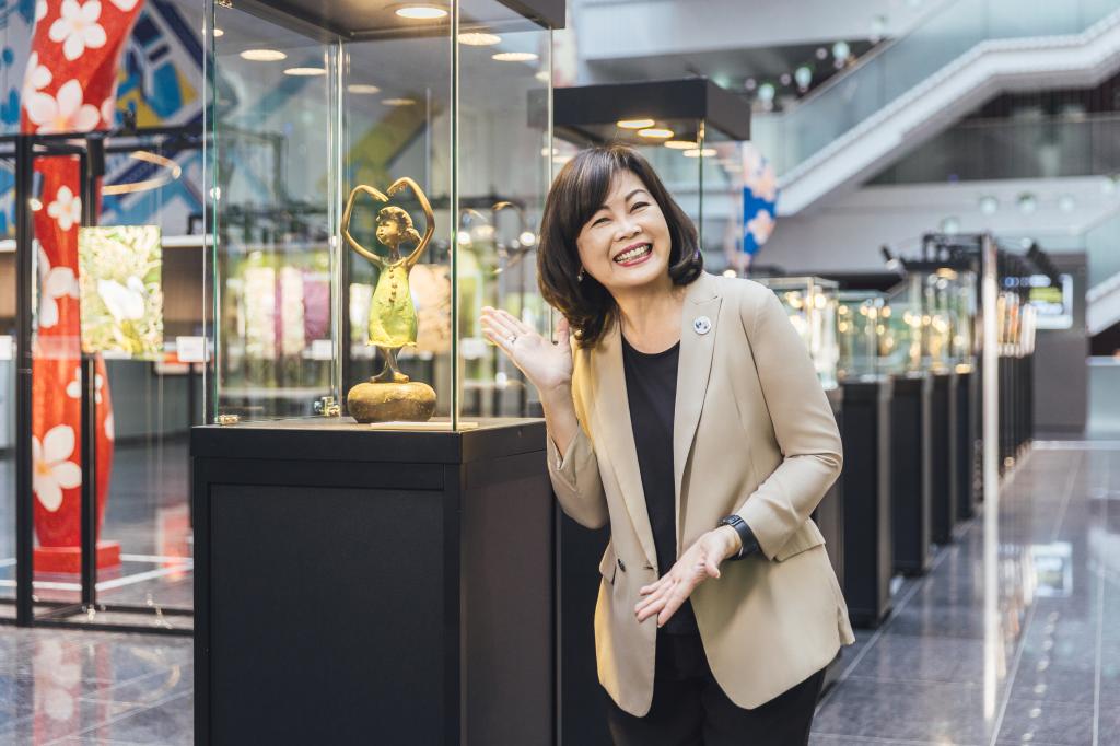 圖說:龍寶建設董事長張麗莉以《乘願再來》展現慈悲與柔韌。(記者張亞痕攝)