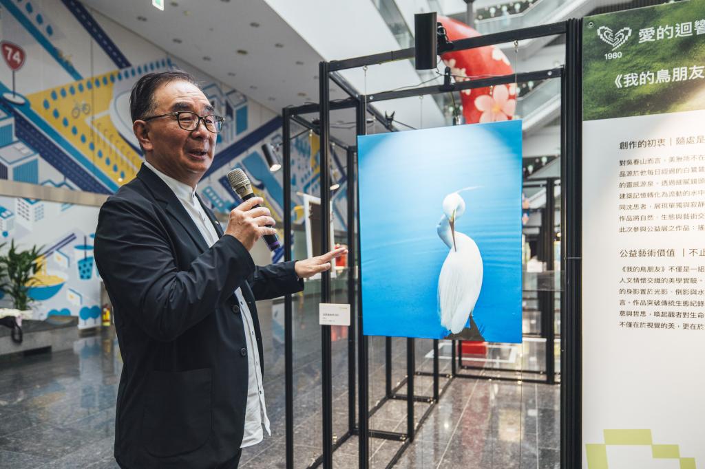 圖說:麗明營造董事長吳春山透過《我的鳥朋友》攝影作品捕捉自然陪伴,他幽默分享在繁忙公務日參與此活動。(記者張亞痕攝)