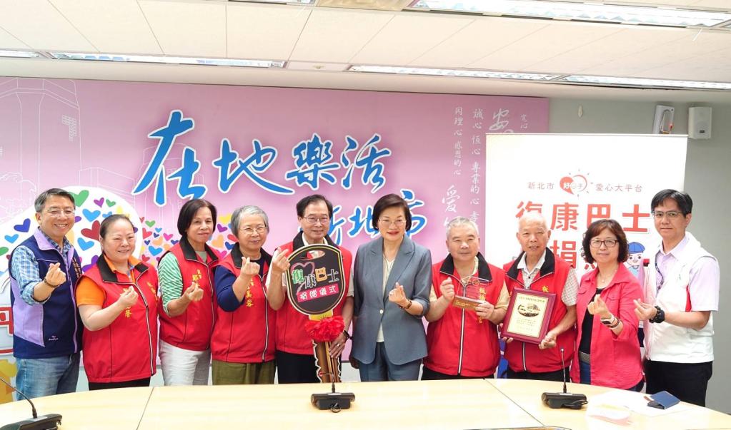 (勁報記者胡光輝/新北報導)板橋義橋宮今(23)日由社團法人板橋義橋宮城隍尊神協會理事長林文銓代表,捐贈一輛雙輪椅座位復康巴士給新北市政府。理事長林文銓表示,這是該宮十方善信的善念,希望將信仰化為行動,發揚城隍尊神濟世救人的精神。新北市社會局長李美珍代表受贈,並回贈侯友宜市長的感謝牌。