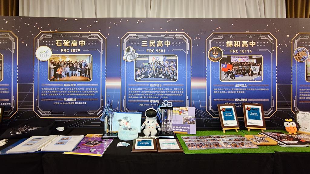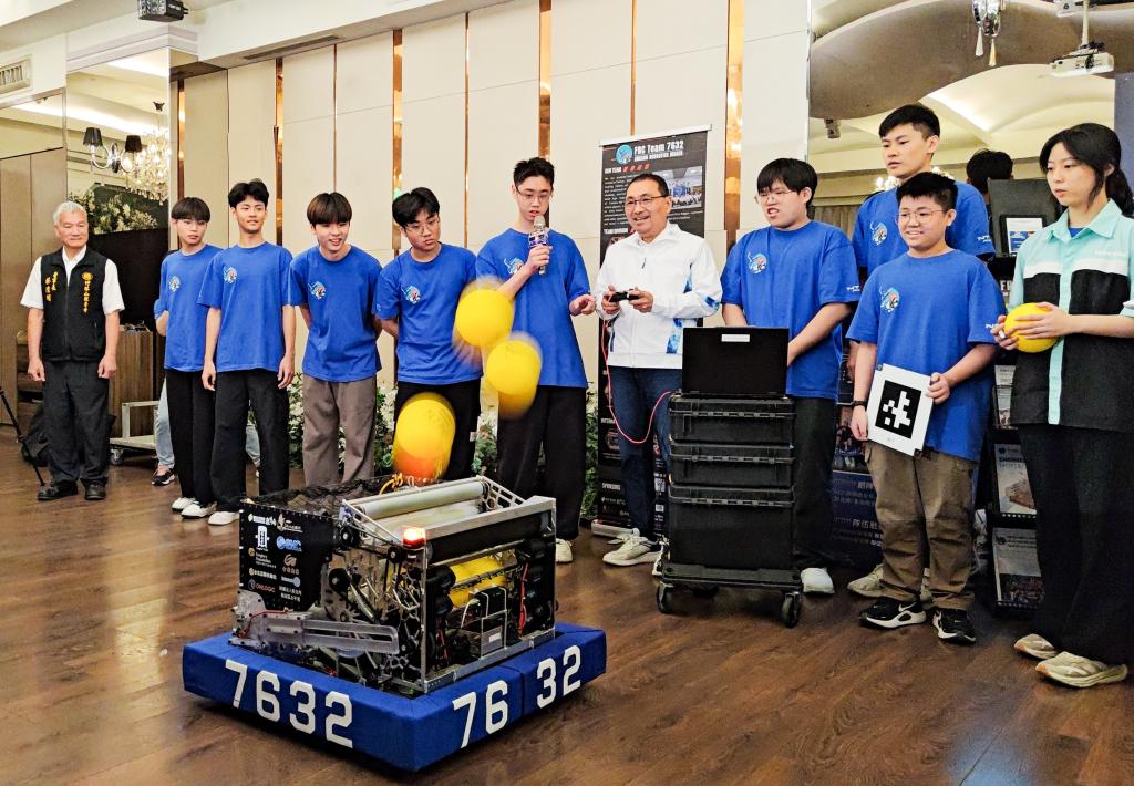 授旗儀式現場也呈現各校在國際賽事的亮眼成果。同步展出在全球區域賽奪下的23座獎項,並由安康高中團隊示範機器人操作,邀請市長侯友宜一同體驗AI與精密機構整合應用,讓現場感受科技實作的魅力;另頒發感謝狀予寶佳公益慈善基金會及中華凌雲股份有限公司等贊助單位,肯定產官學攜手科技人才培育的支持力量。