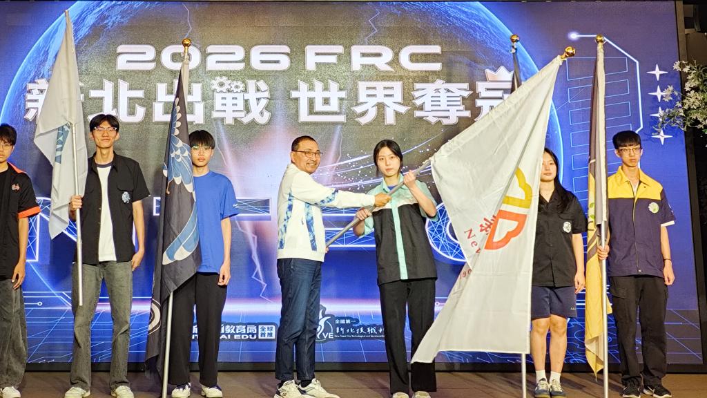 (勁報記者胡光輝/新北報導)新北市今(23)日舉辦「2026 FRC休士頓世界決賽授旗儀式」,由市長侯友宜親自為即將遠征美國總決賽的師生授旗加油。今年新北戰隊表現再創巔峰,共有12校投入FRC國際賽事,累計抱回23項獎項,其中南山高中、安康高中、格致高中、樹林高中及裕德高中聯隊、錦和高中6校5隊成功晉級休士頓世界總決賽,寫下臺灣史上最多隊伍挺進FRC總決賽的紀錄,展現新北科技教育與跨域人才培育的成果。