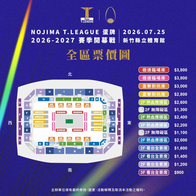 ▲2026-2027 Nojima T.LEAGUE 蛋牌 賽季開幕戰座位圖。(圖/蛋牌提供)